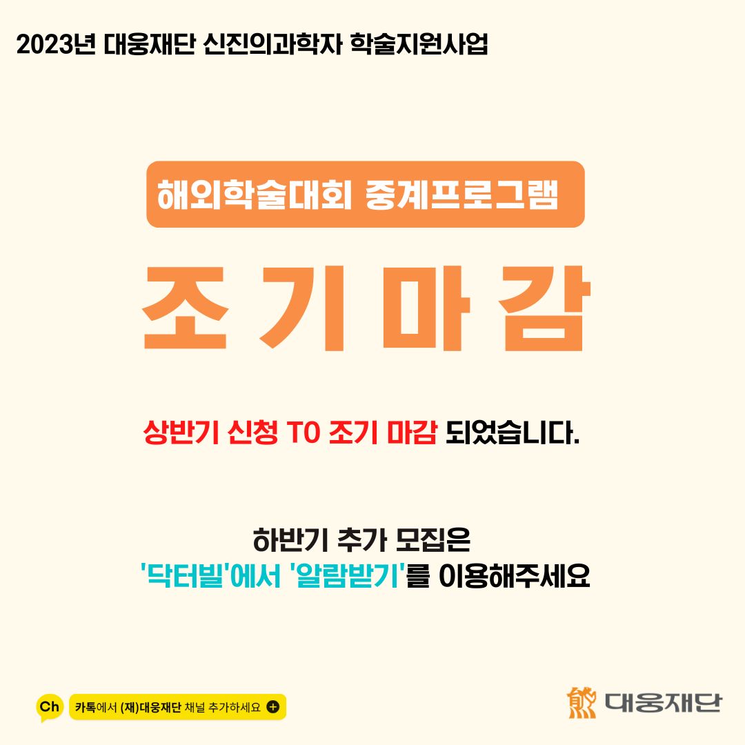 대웅재단 2023년 해외학회 중계사업에 많은 선생님들의 관심과 지원에 감사드립니다.